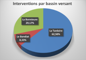8% des interventions sont réalisées sur le Bandiat, 62% sur la Tardoire et 29% sur la Bonnieure.